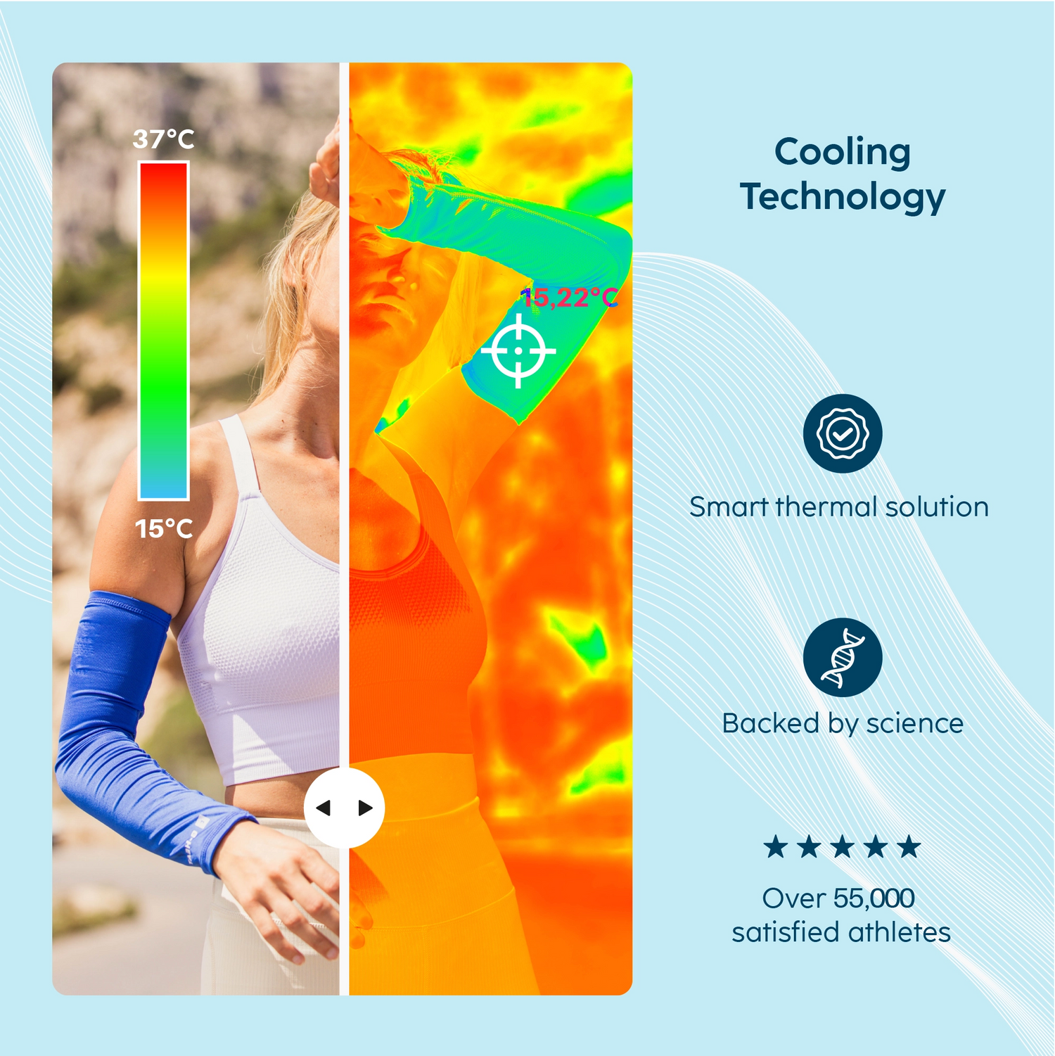 Lightweight and comfortable to wear, our cooling sleeves keep you cool and block up to 97.5% of harmful UV rays. They reduce the risk of heat-induced itching and the undesirable effects of sunburn on the arms. Mixed and stretchable, they fit all arms.